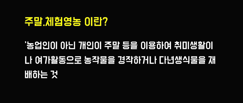 즉 농민이 아니더라도 개인이 취미생활 정도로 농작물등을 재배하는 것을 의미하는 것이 주말.체험영농이라고 하는 것입니다.