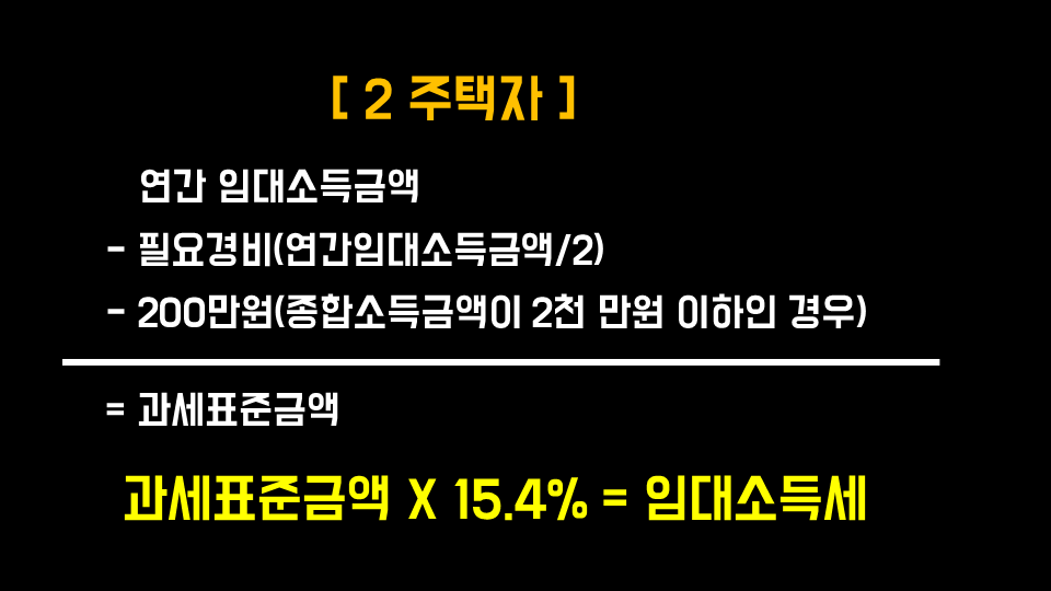 ■ [가정] 임대사업자 등록을 하지 않고 있으며 연간 임대소득이 2천만원 이하인 2주택자