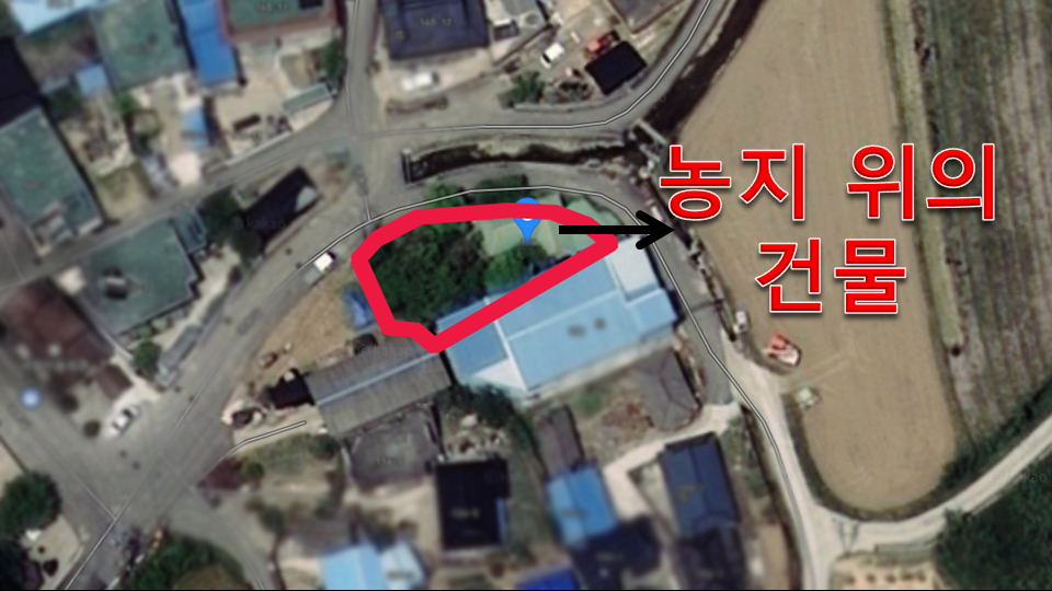그런데 위성지도상으로 살펴 보면 실제로는 건물이 존재를 하고 있는 것을 확인해 볼 수가 있습니다.