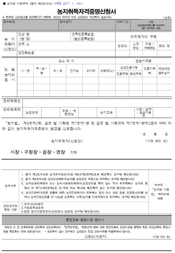 하다 못해 건축허가가 나 있는 토지를 구입하는 경우라 해도 현재 지목이 농지라면 농지취득자격증명서는 발급 받아야만 합니다.