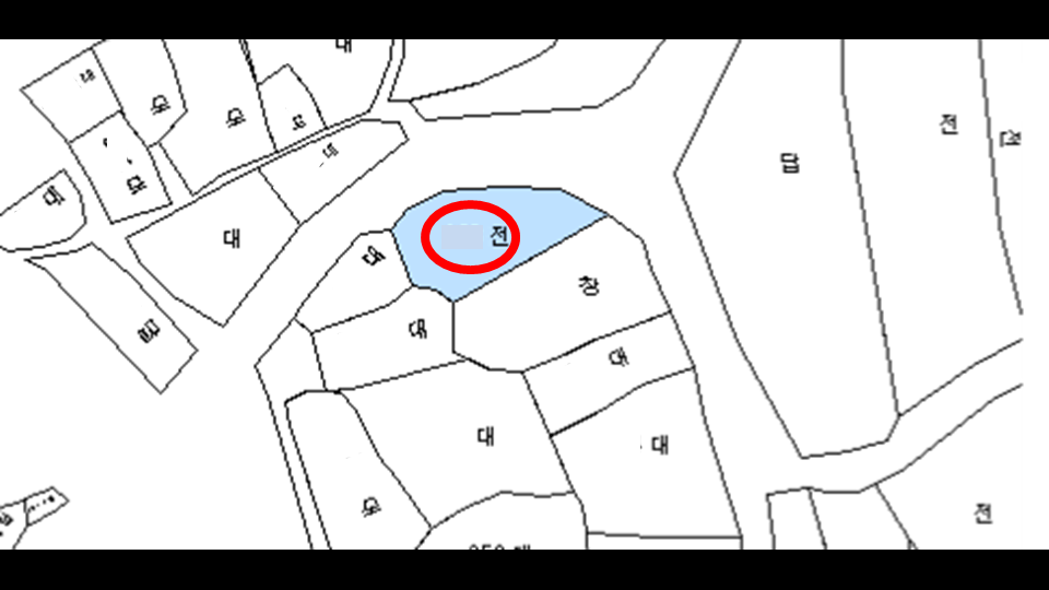 화면으로 보이는 토지는 지목이 전으로 된 토지로 등기부나 건축물 대장상에는 건물이 존재하고있지 않은 토지 입니다.