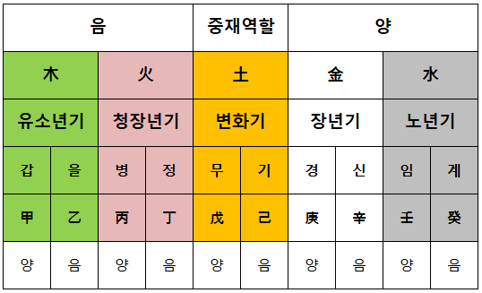 예전 포스팅에서 목화토금수를 인간의 성장과정으로 나누어 본 적이 있었습니다.