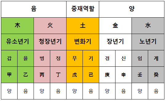 이렇듯 음양오행 순환으로 천간의 모습을 다시 한번 짚어 보았습니다.