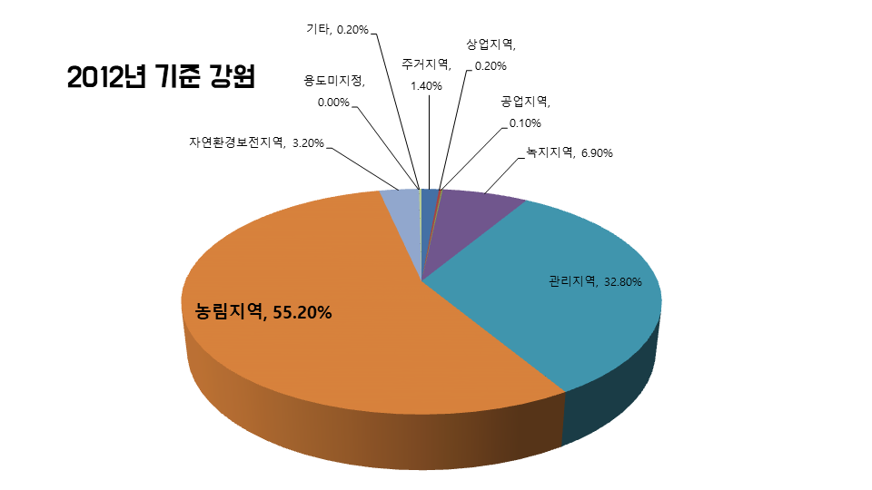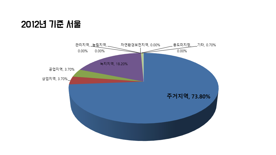 실제로 확인해 볼 수 있는 통계청의 2012년 자료를 기준으로해서 서울, 지역과 강원지역의 해서 용도지역을 살펴 보겠습니다.