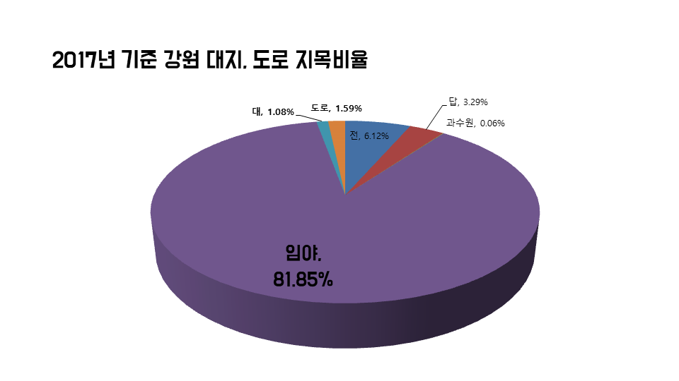 특히나 강원지역의 토지는 81.85% 임야로 되어져 있는 상태 입니다.