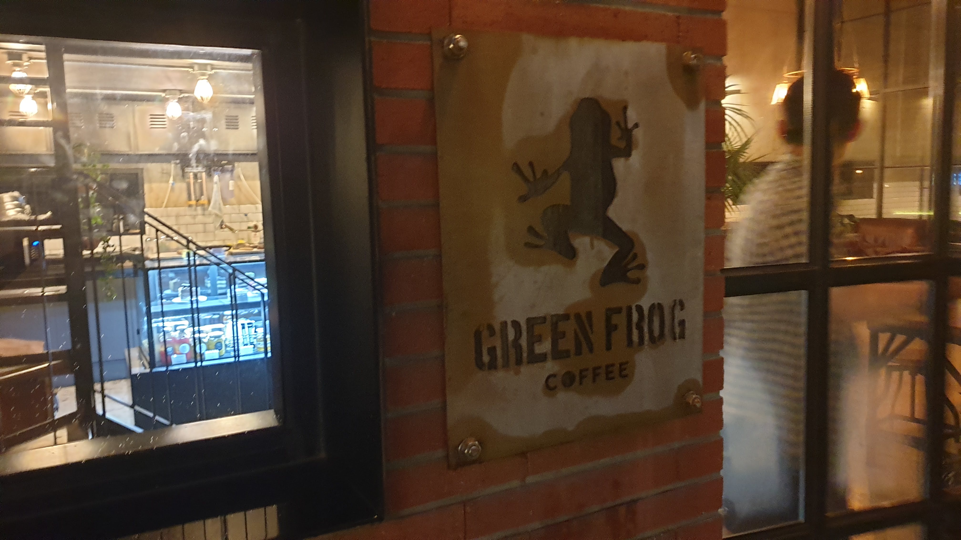 카페 이름처럼 청개구리가 벽을 타고 오르는 모습의 조그만 간판이 입구에 보이네요.^^