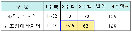 조정대상지역으로 지정된 곳에 기존주택을 포함하여 2주택이상이 될 경우 취득세율이 무려 8%가 된다는 것입니다.