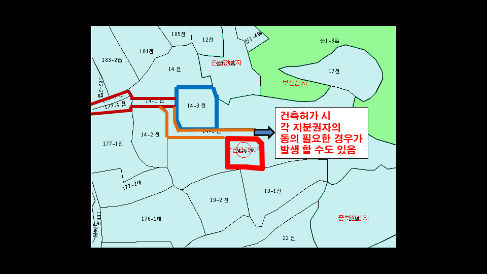 이럴 경우 나중에 필요에 의해서 집을 짓고자 할 때 도로개설 예정 이였던 토지의 지분권자들에게 일일이 동의절차를 거쳐서 도로를 개설해야 하는 큰 불편함이 생길 수가 있다는 것입니다.