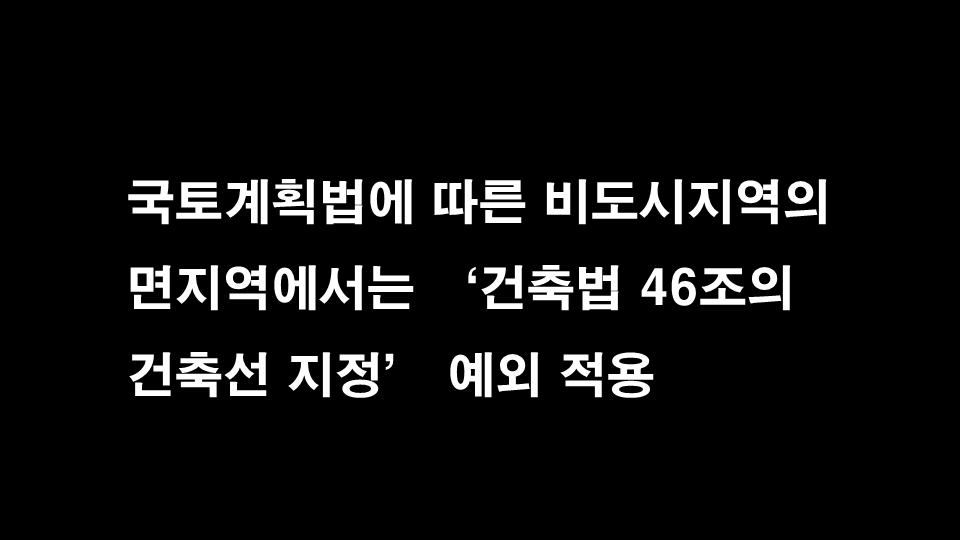 그런데 국토계획법에 따른 비도시지역의 면지역에서는 ‘건축법 46조의 건축선 지정’ 예외가 적용되는 경우 등 여러 가지 예외 사항이 발생할 수가 있으니 건축용 토지를 구입하고자 할 경우 반드시 해당 시군구청 인허가담당자나 해당지역 토목설계사무소 등에 사전 문의를 해 보시기 랍니다.
