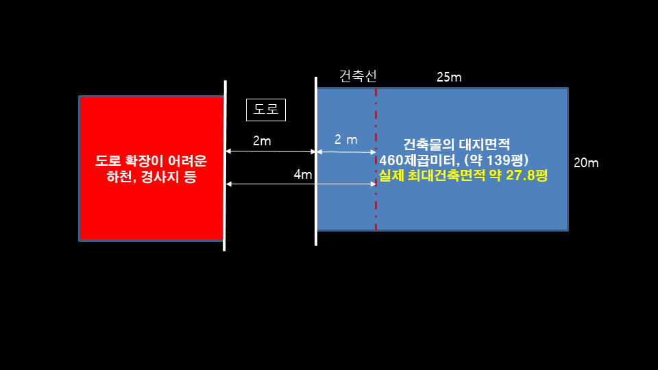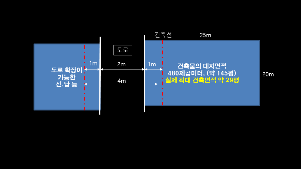 가정했던 도로폭이 2m 이므로 4미터 도로가 되기 위해서 2m가 더 확장이 되어야 하는데