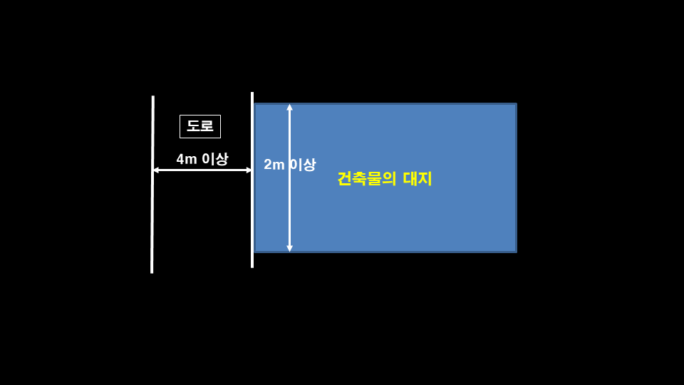 예외가 있긴 하지만 앞서 말씀 드린 바와 같이 건축물의 대지는 통상 4m이상의 도로에 2m이상 접해야 한다고 규정을 하고 있습니다.