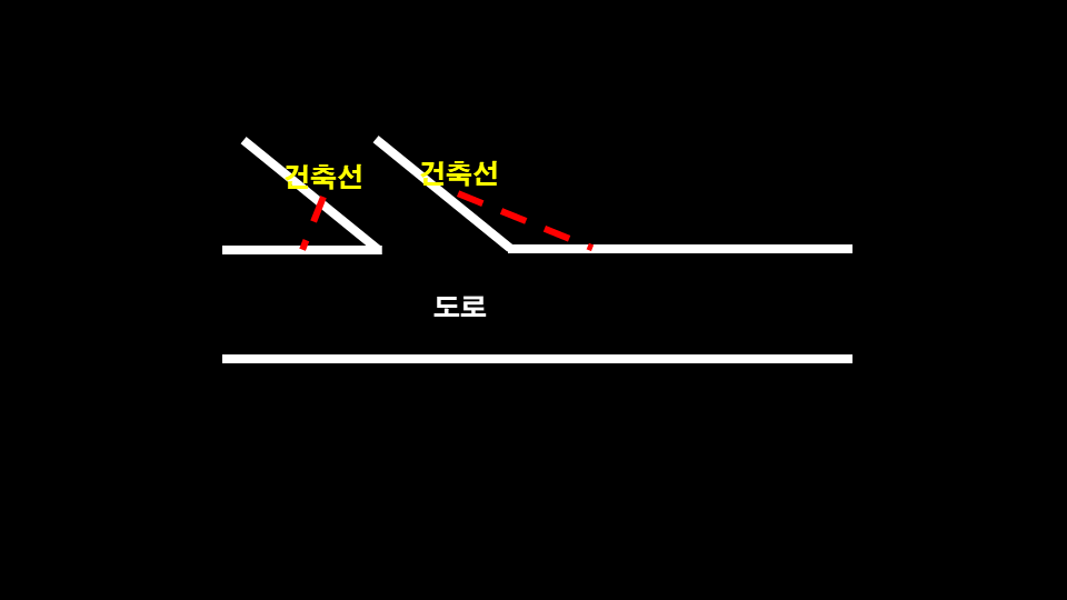 모퉁이에서 도로의 폭과 각도에 따라서 건축선이 달라지는 경우도 있고,