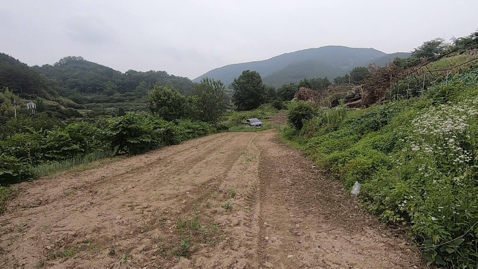 현재 해당 토지 아래쪽 가까운 곳에는 농막이 하나 설치가 되어져서 수도 전기가 들어와 있는 상태로 입니다.
