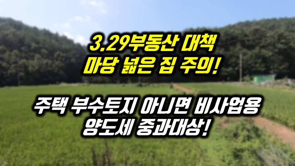 3.29 부동산대책에 따라 비사업용토지에 대한 양도소득세 규정이 달라지게 되면서 자칫 마당 넓은 집을 보유한 분들도 양도소득세 생각치 못할 정도로 많은 양도소득세가 부과가 될 수도 있다는 것입니다.