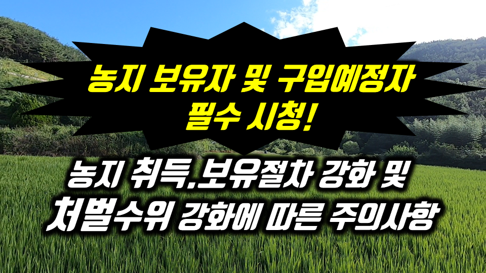 현재 농지를 보유하고 계신 분들 앞으로 농지를 구입할 계획을 가지신 분들은 이번 개정된 법률을 주의 깊게 살펴서 대응하시기 바랍니다.