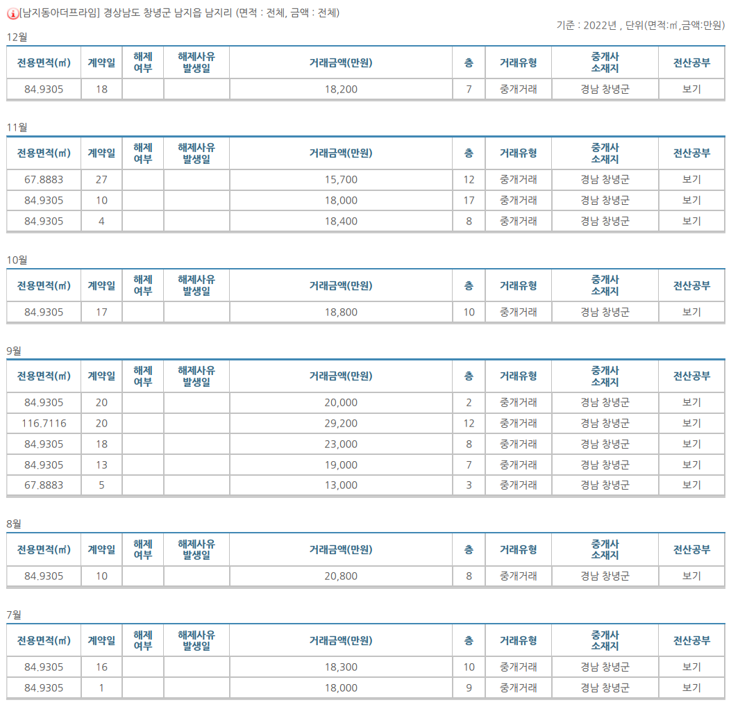 | 창녕 남지읍 이원웰스타 아파트 최근 실거래 현황 (0) | 2023.01.12 |
