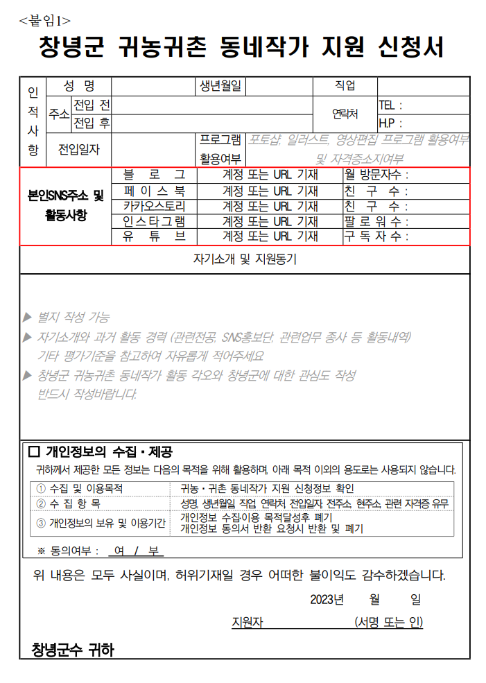 각종 SNS를 운영하고 계시는 창녕군민의 경우 아래와 같은 모집조건에 부합이 된다면 창녕군 동네작가 지원 신청을 해 보시기 바랍니다.