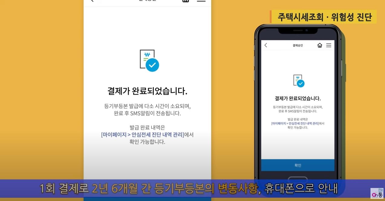 2년 6개월간 등기부등본의 변동사항을 휴대폰으로 안내해 준다는 것 입니다.