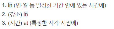 우리는 전치사 in을 ~안에로 만 생각하고 있는 경우가 많습니다.