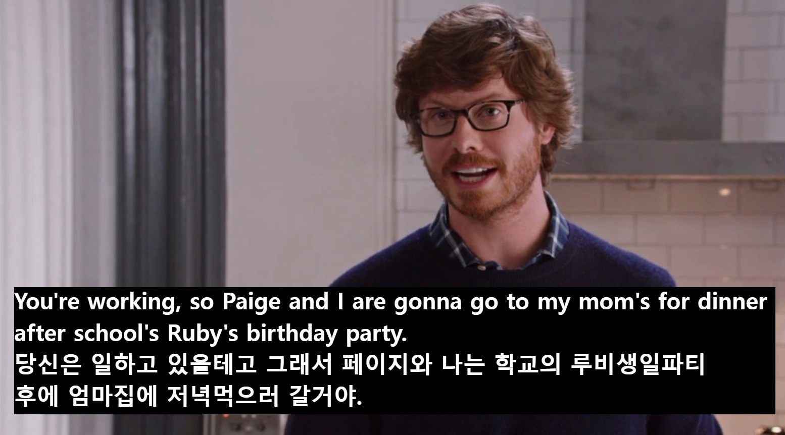 You're working, so Paige and I are gonna go to my mom's for dinner after school's Ruby's birthday party.