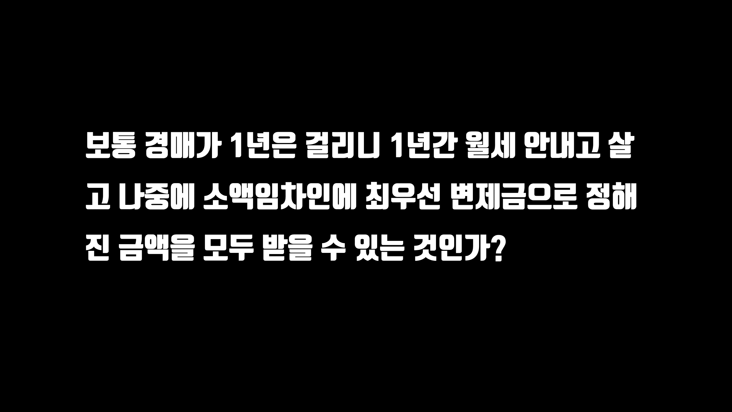 이말 대로라면 보통 경매가 1년은 걸리니 1년간 월세 안내고 살고 나중에 소액임차인에 최우선 변제금으로 정해진 금액을 모두 받을 수 있는 것인가?
