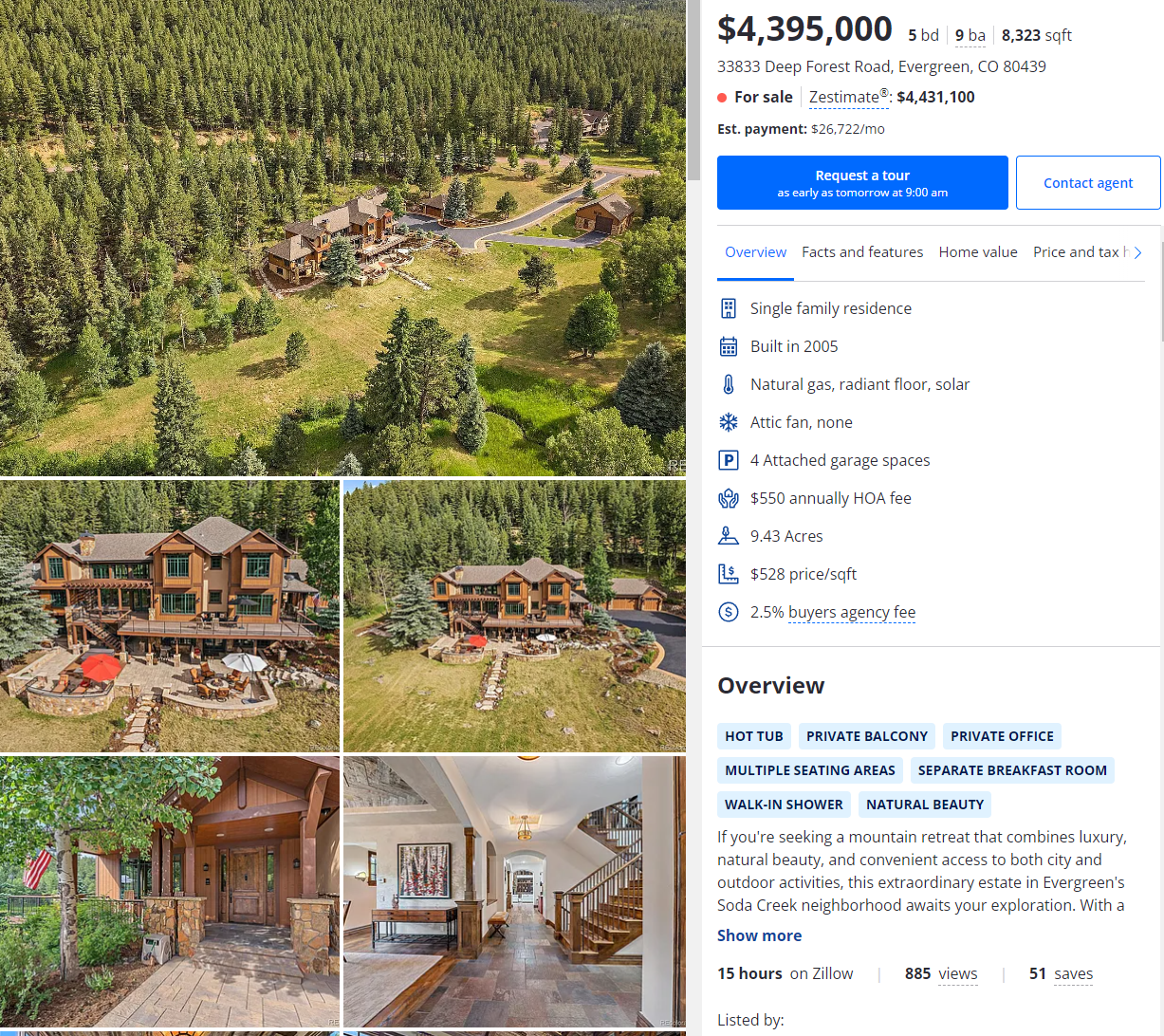 만약 고급스럽고 자연의 아름다움과 도시와 야외 활동에 편리한 접근성을 결합한 산악 휴양지를 찾고 계시다면, 에버그린의 소다 크릭 동네에 위치한 이 특별한 부동산은 여러분의 방문을 기다리고 있습니다.