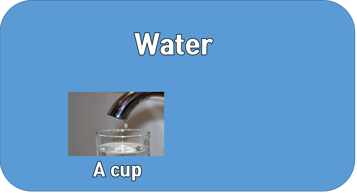 a cup of water 의 경우 물이 있는데 그 중에서 한잔을 담은 것입니다.