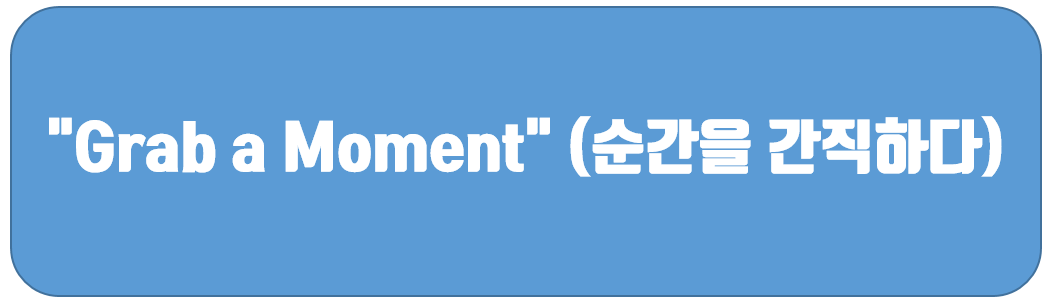 예문: "I quickly grabbed a moment with my favorite celebrity to take a photo together." (내가 좋아하는 연예인과 함께 사진을 찍기 위해 빠르게 그 순간을 포착했다.)