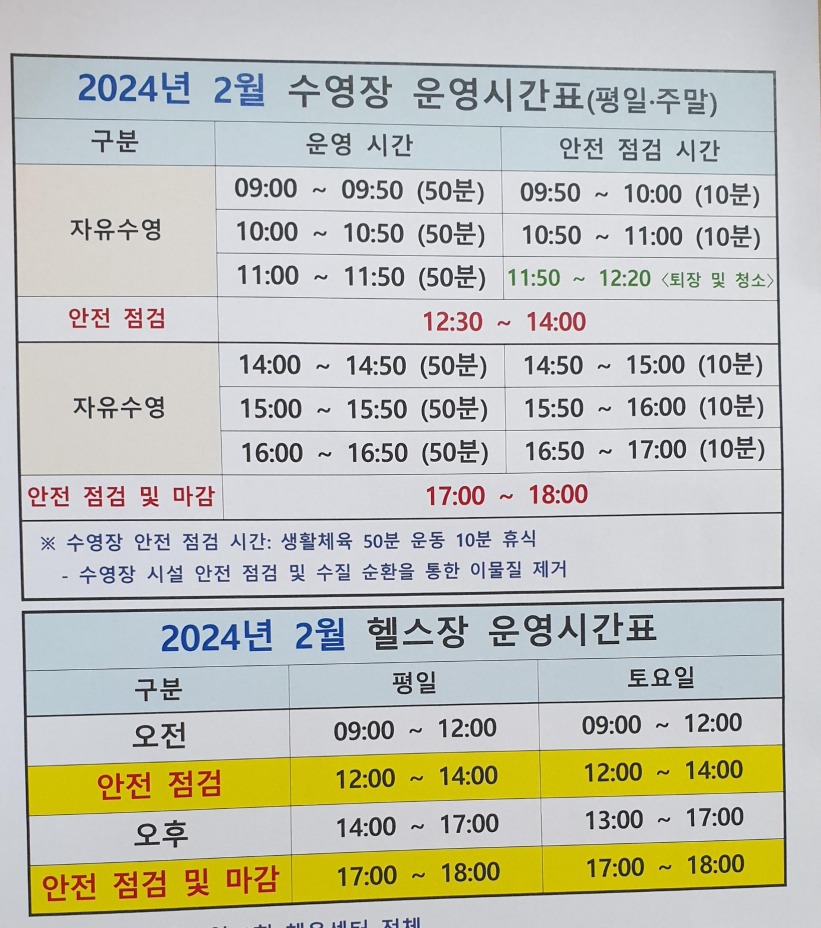 4월 부터 유료화 되면 시설 이용요금은 수영은 월 5만원, 헬스는 월 4만원이라고 하니 미리 참고 하시기 바랍니다.