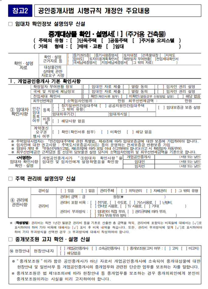 2. 중개대상물 확인설명서에 추가 예정될 내용