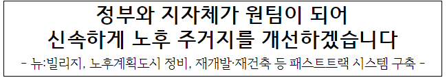 정부는 노후 주거지 개선을 위한 '패스트트랙 시스템'을 구축한다.