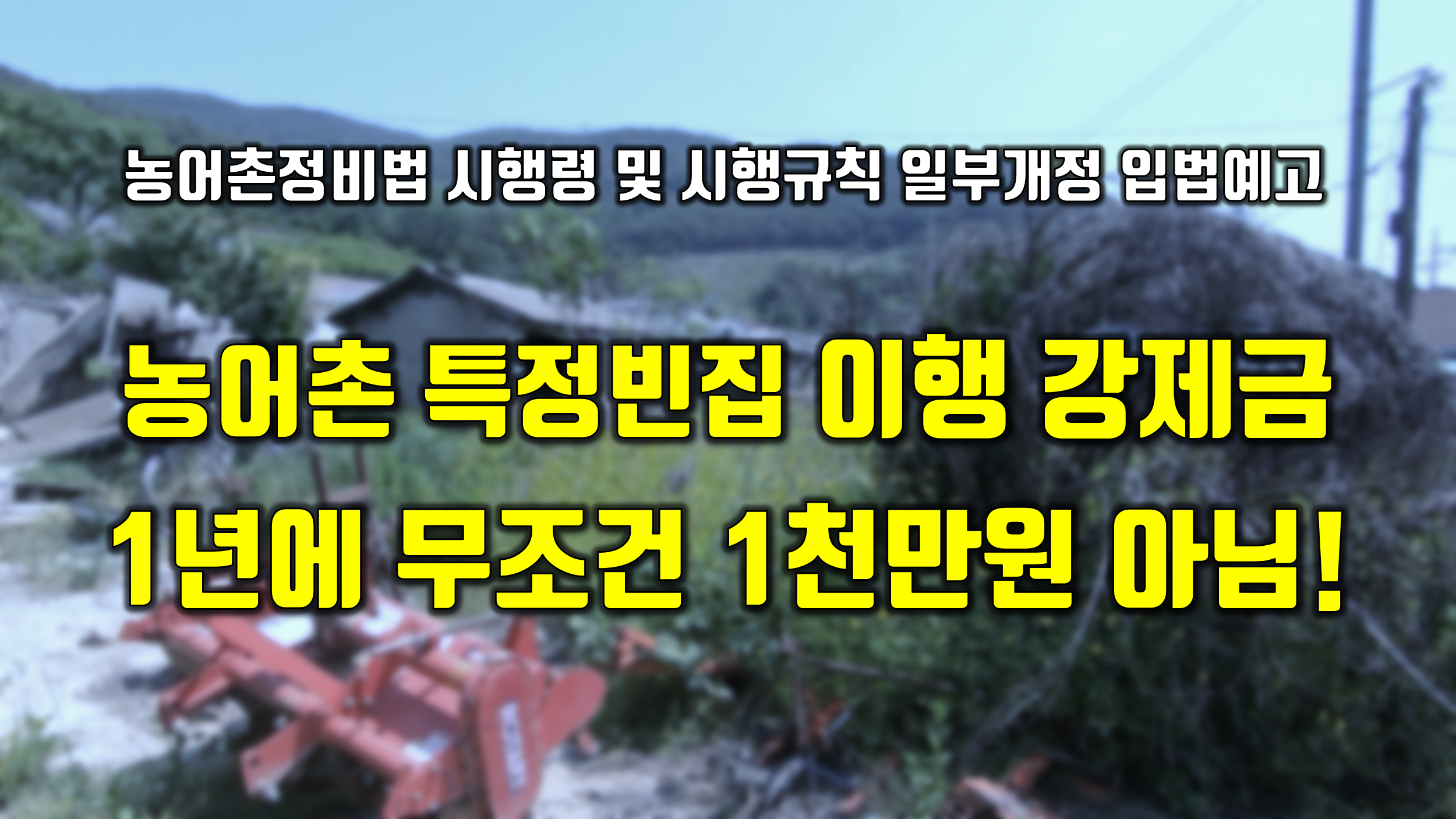 올해 초 이슈가 되었던 것이 농어촌 빈집을 방치하면 1년에 1천만원까지 이행강제금이 부과 될 수 있다고 하여 크게 논란이 되었던 바가 있습니다.