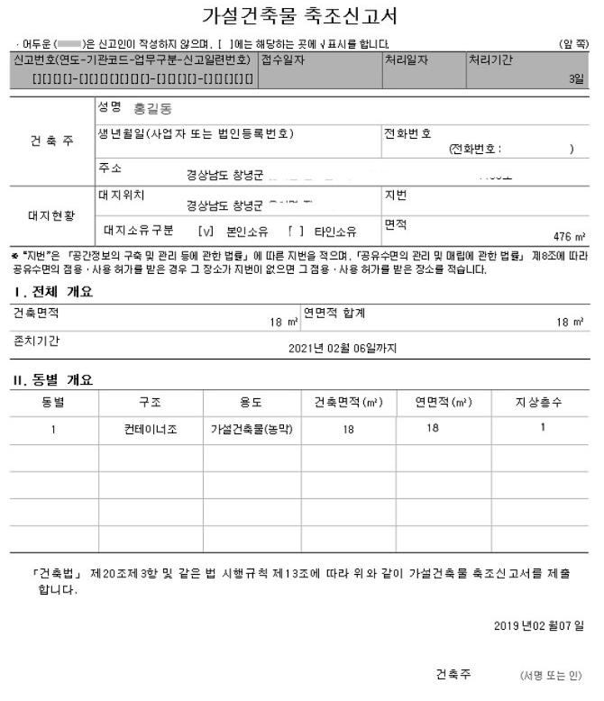 간편한 설치 절차: 농막은 건축법상 가설건축물에 해당되므로 농지전용을 하지 않아도 되고 간편하게 가설건축물 축조신고를 하고 컨테이너 6평 이하 짜리 하나 올려 놓으면 됩니다.