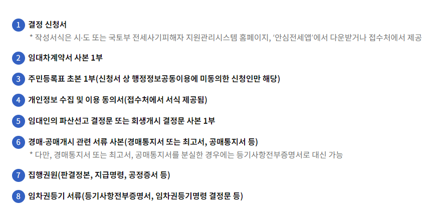 피해 사실 확인에 필요한 서류 (임대차 계약서 사본, 경매 통지서 등)를 전자 문서로 등록합니다.