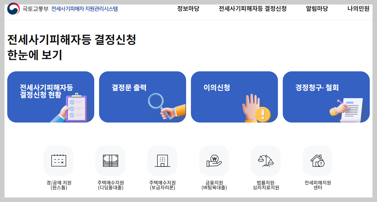 국토교통부는 4월 25일부터 전세사기 피해 신청 및 지원을 더욱 편리하게 만드는 '전세사기피해자 지원관리시스템'을 운영합니다. 이제 전세사기 피해 신청과 긴급 경매 유예 신청을 온라인으로 간편하게 처리할 수 있습니다!