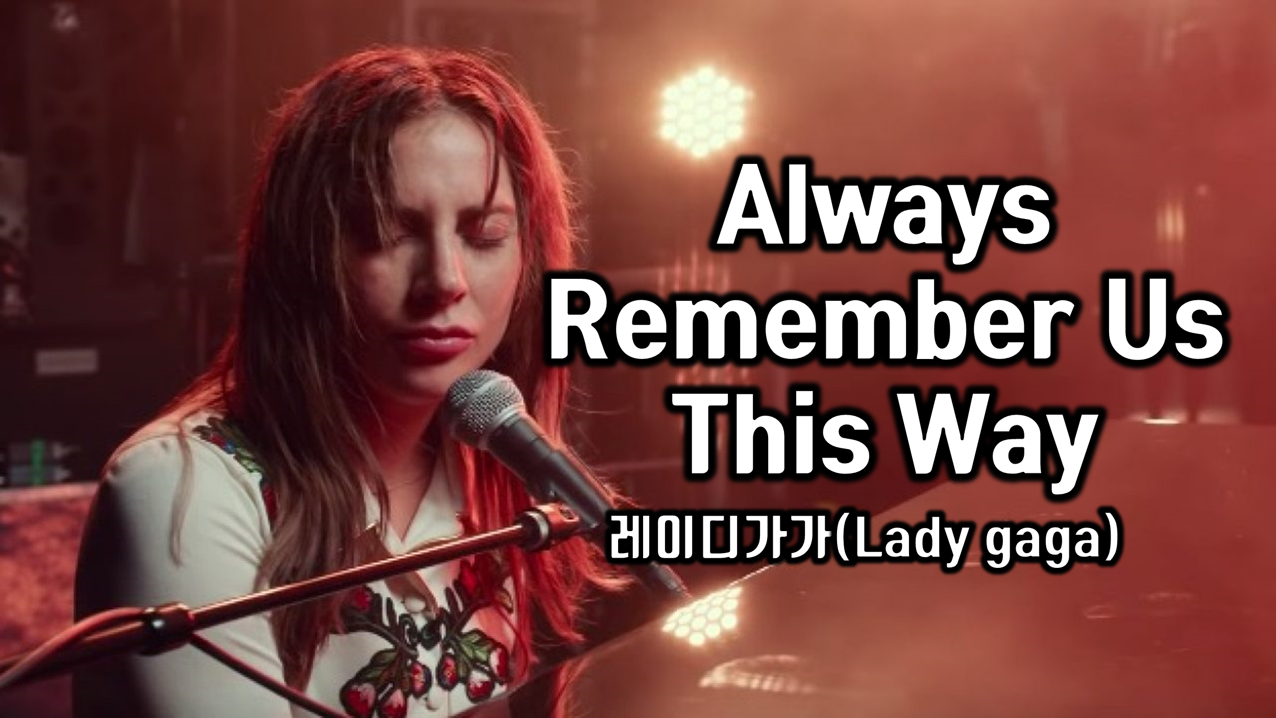 이 곡은 레이디 가가(Lady Gaga)가 부른 "Always Remember Us This Way"로, 영화 "A Star Is Born" (2018년)의 사운드트랙 중 하나입니다. 영화에서 가가는 뮤지션으로서의 진정성과 연인을 향한 애틋한 사랑을 표현합니다. 이 곡은 영화 속 장면과 맞물려 감정적인 울림을 더하며, 많은 이들에게 사랑받는 발라드로 자리 잡았습니다.