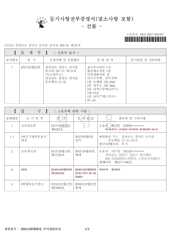 - 갑구: 소유권에 관한 사항을 알려줘요. 현재 소유자가 누구인지, 언제 어떻게 소유권을 취득했는지, 그리고 소유권에 제한이 되는 가압류, 가처분, 경매개시결정 등의 정보가 기록됩니다. 가장 중요한 부분 중 하나이니 집중해서 봐야겠죠?
