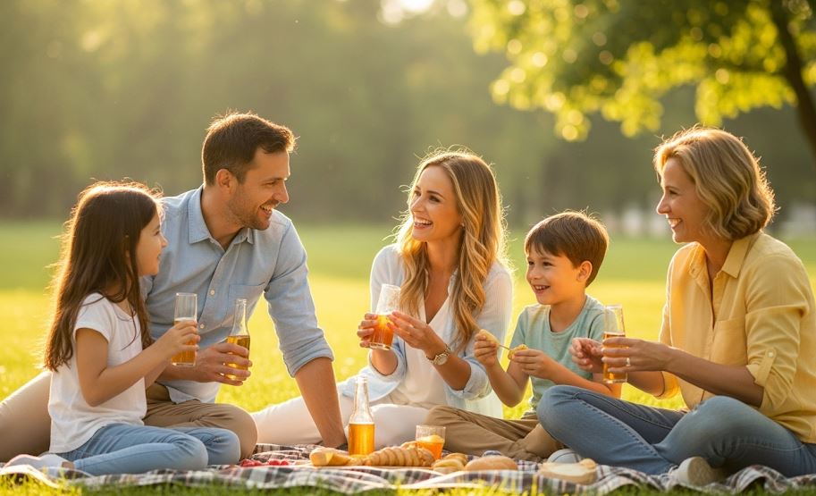 - "This picnic with my family is perfect. I'm feeling great." (가족과의 이 피크닉은 완벽해. 기분 최고야.)