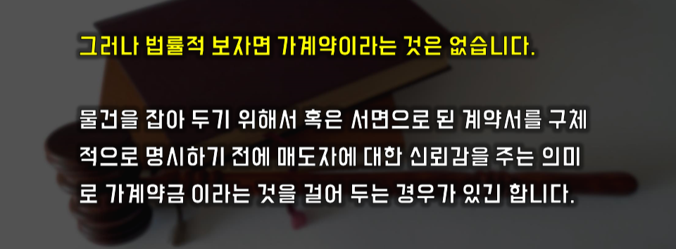 우리가 흔히 사용하는 가계약이라는 의미가 사실은 애매한 용어라는 것이죠.